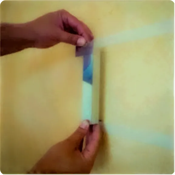 Defina a altura da instalação, cole a fita da parte de baixo do número em sentido horizontal na parede. Deixe a distância correspondente ao tamanho do número entre a fita de baixo e a de cima (opcional). As fitas serão utilizadas para o alinhamento dos números. Somente com a de baixo, já é possível alinhar.