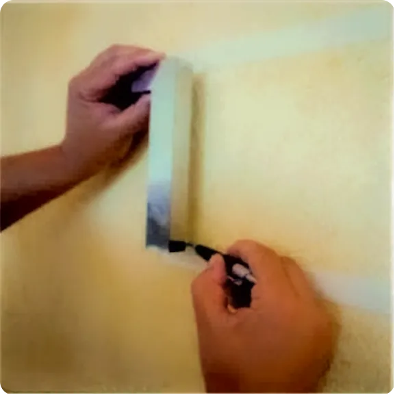 Desamasse os chumbadores (arames) que se encontram na parte de trás dos números ou letras, deixando-os retos e apontados na direção da parede. Alinhe o número ou letras pela fita da base e marque com uma caneta na parede onde encostar as pontas dos arames para a furação.