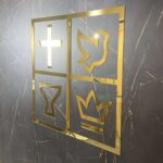 Símbolo Quadrangular em Acrílico espelhado nas cores dourada ou prateada, para Igrejas e Altares Quadragular. Uma obra-prima exclusiva da Fábrica Púlpitos Betel.